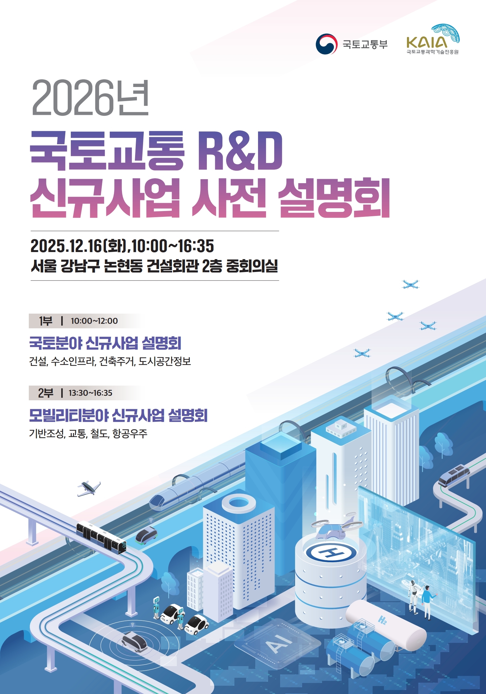 2026년 추진 예정인 국토교통 R&D 신규사업에 대한 사전 설명회를 아래와 같이 개최하고자 합니다.