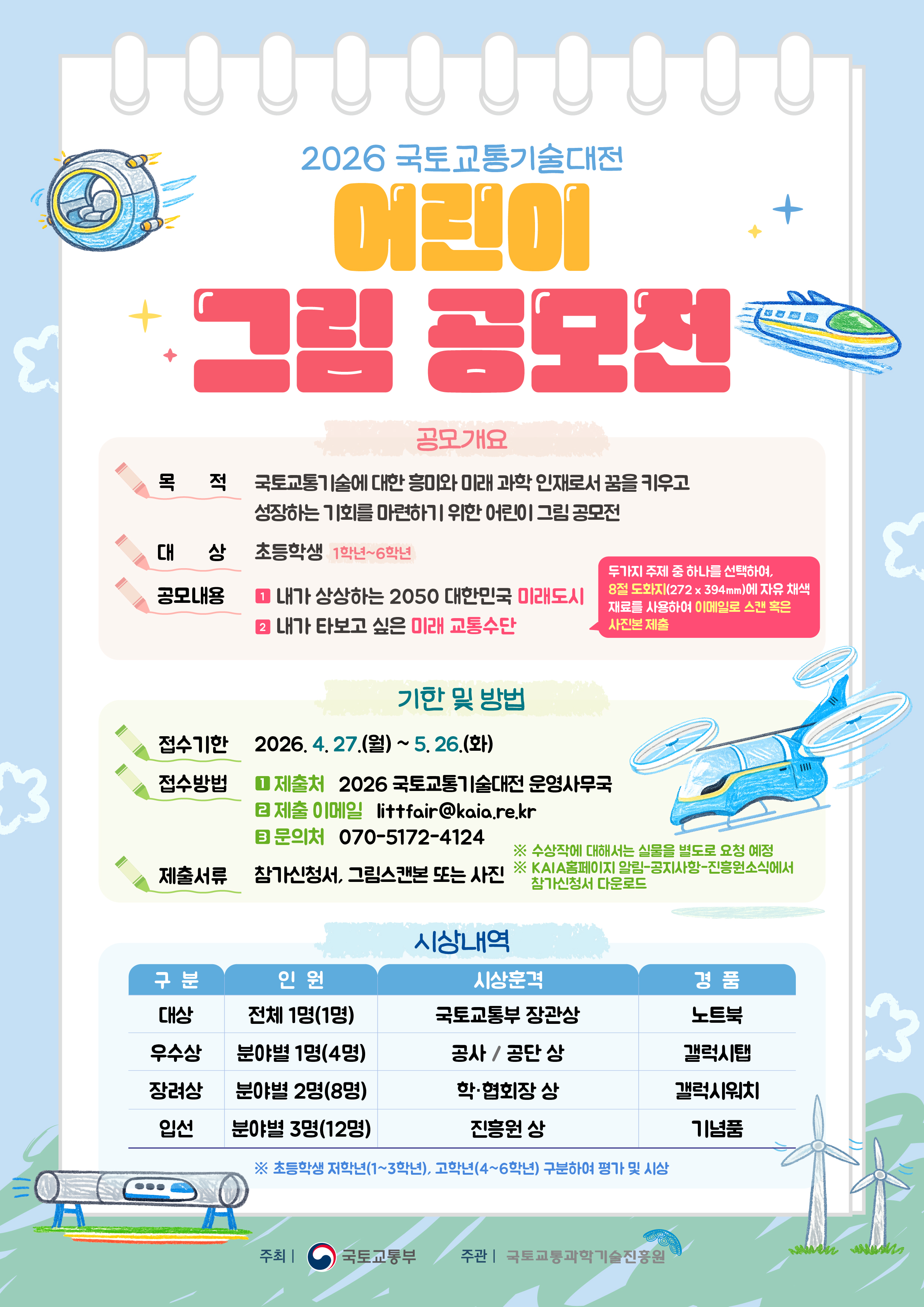성장하는 기회를 마련하기 위한 초등학생 대상 어린이 그림 공모전을 아래와 같이 개최합니다.